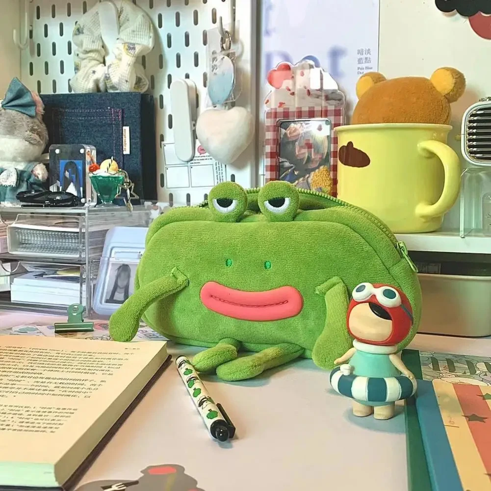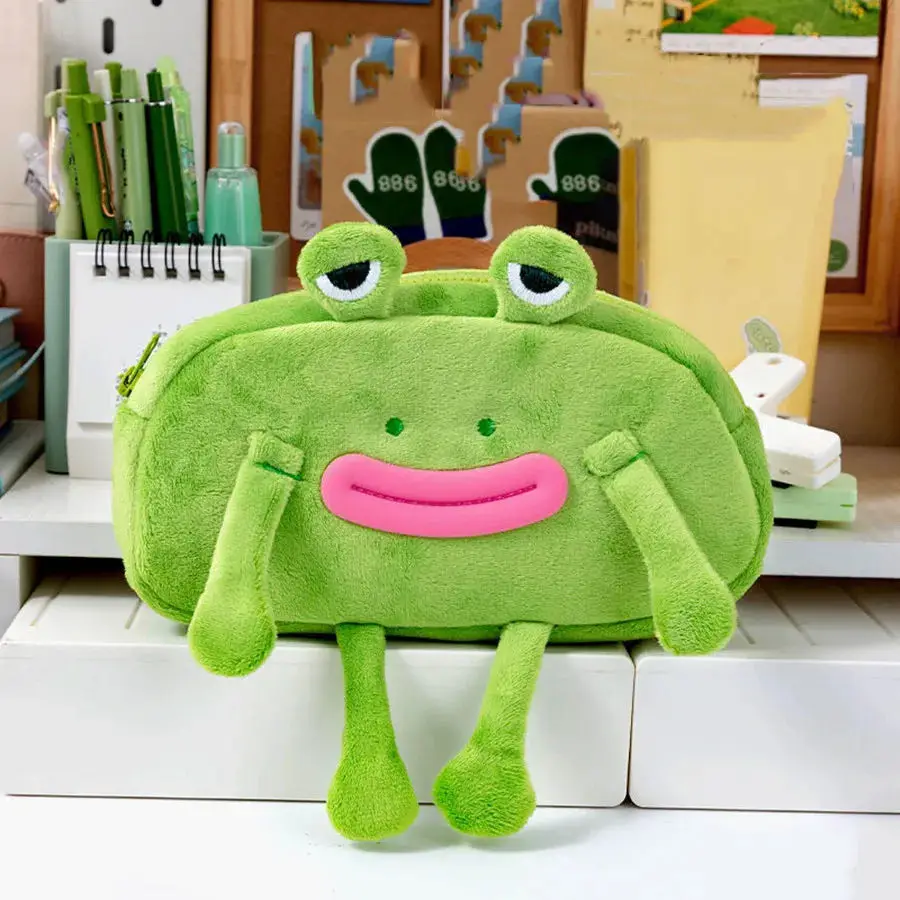 High-quality Fabric Toiletry Bag Adorable Frog Plush Cosmetic Bag with Zipper Closure Capacity Portable Pencil Phone Storage